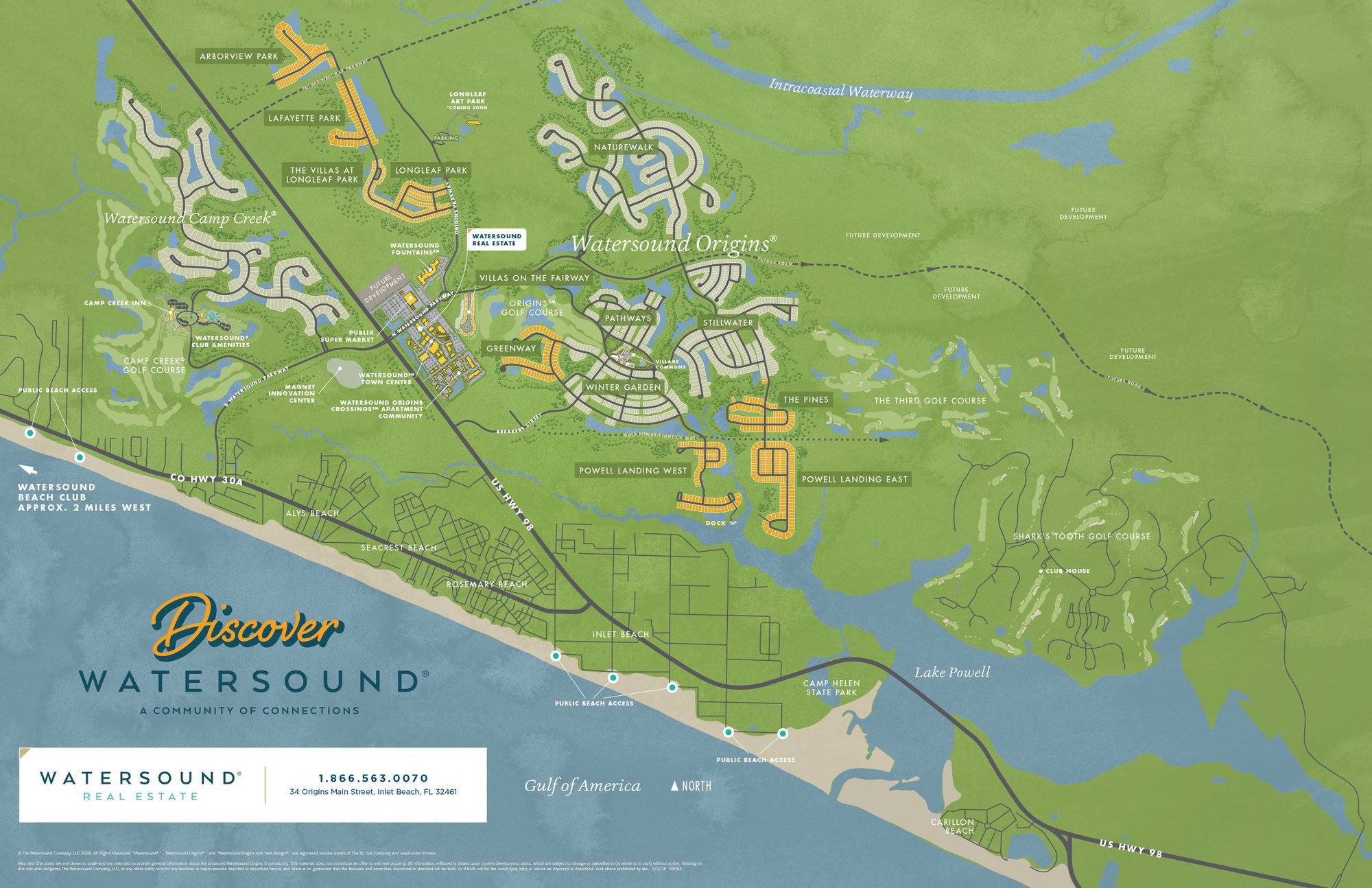Obtain the Property Report required by Federal Law and read it before signing anything. No federal agency has judged the merits or value, if any, of this property. Kentucky Registration #R-171. For NY Residents: THE COMPLETE OFFERING TERMS FOR THE SALE OF LOTS IN THE WATERSOUND ORIGINS COMMUNITY ARE IN THE CPS-12 APPLICATION AVAILABLE FROM SPONSOR, THE WATERSOUND COMPANY, LLC. FILE NO. CP18-0089.