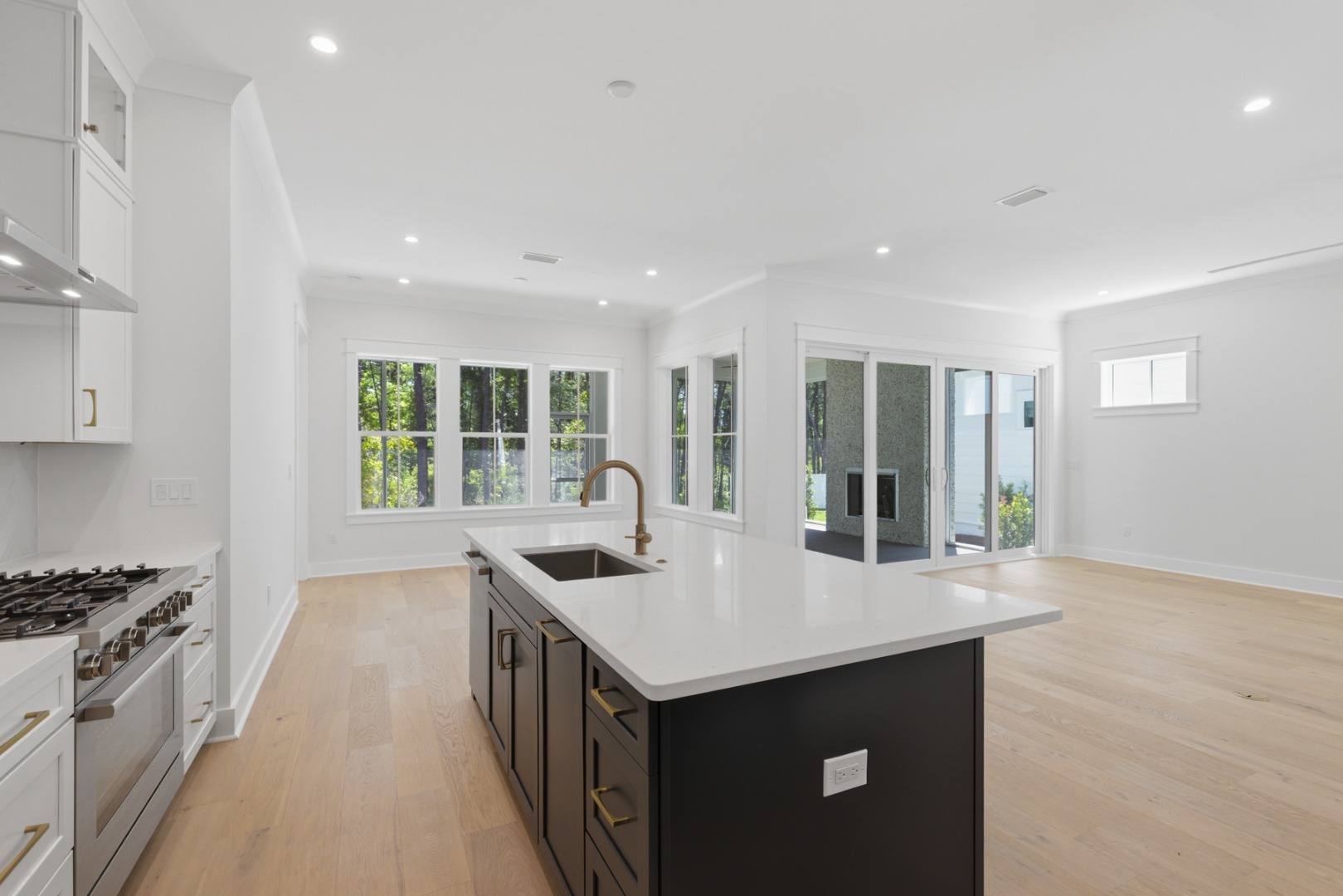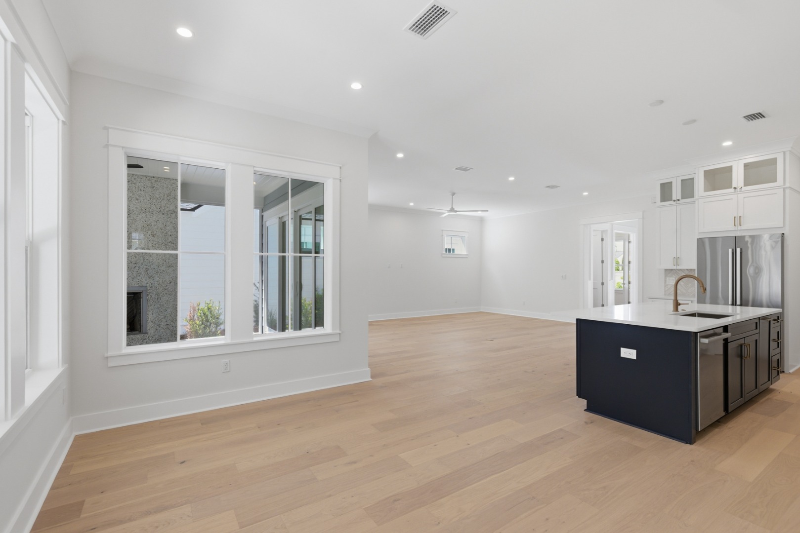 Experience the perfect blend of modern luxury and serene natural surroundings in this new construction home in Powell Landing East in the Watersound Origins community. Backing up to a peaceful community preserve, the Cyra floor plan by Arkon Group offers 3 bedrooms, 3.5 bathrooms, a study, and 2,213 square feet of thoughtfully designed living space. Designed for both comfort and style, this home boasts premium engineered wood floors throughout, upgraded tile accents, and an extended kitchen island perfect for entertaining. The chef's kitchen features high-end stainless steel appliances, stacked cabinets to the ceiling with elegant lighting, tile backsplash, and a spacious open layout that seamlessly connects to the living and dining areas. Large slider doors open the living room up to the expansive screened rear porch, where a cozy fireplace creates an inviting outdoor retreat. The primary suite includes a spa-like bathroom and a walk-in closet, while two additional guest bedrooms each have en-suite bathrooms for privacy. A gas lantern on the front porch adds timeless charm, welcoming you home in true Southern style. With 435 sq ft of covered porches, a 2-car garage, and high-end finishes throughout, this home is designed to maximize luxury and livability.