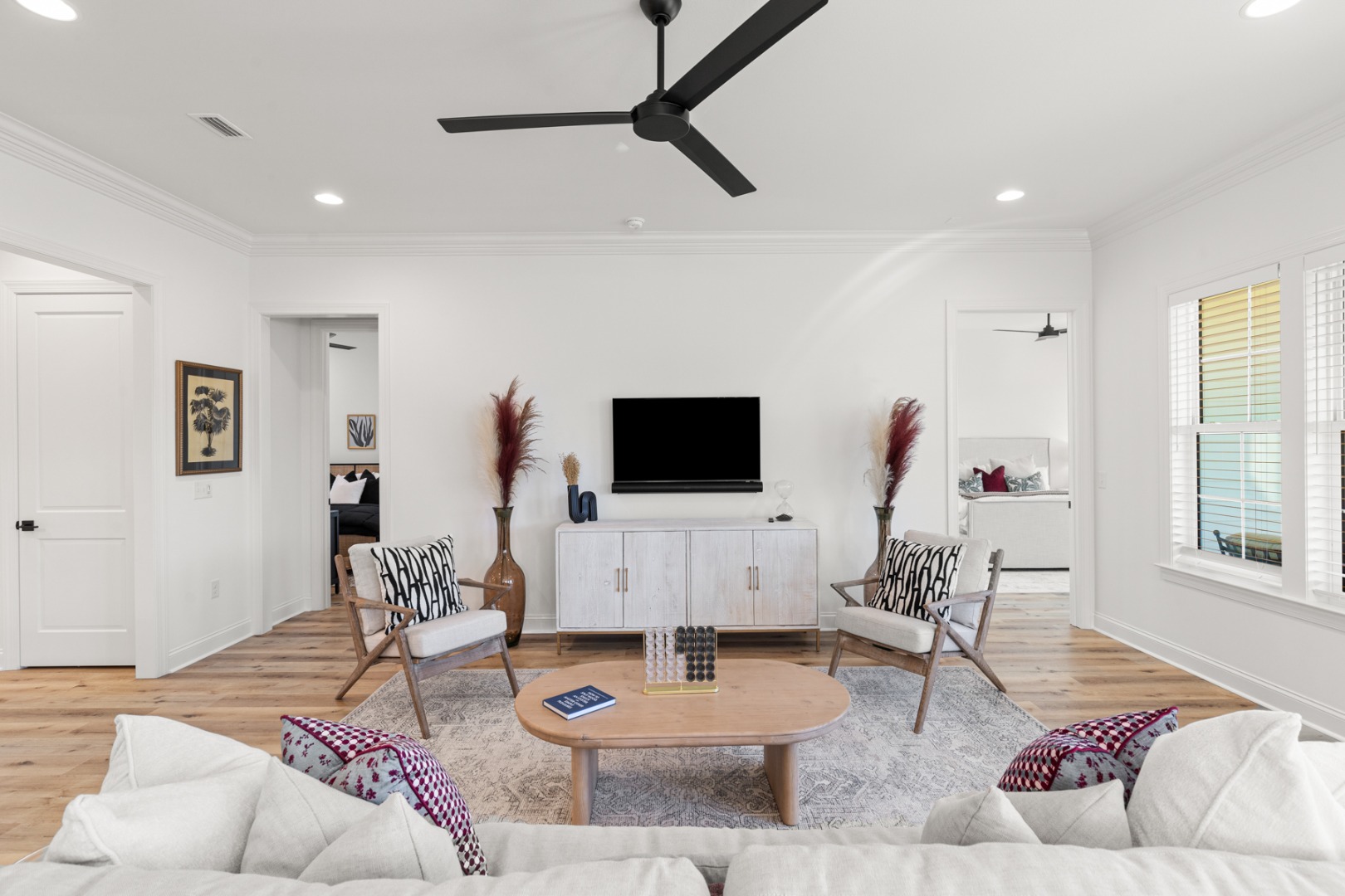 *Fully Furnished Brady MODEL - this is a true turn-key opportunity!! in the Longleaf Park neighborhood in the Watersound Origins community, conveniently located closer to the front of the community with easy access to the Watersound Town Center. The Brady plan is a single-level, open-concept floor plan with 3 bedrooms, 2.5 baths, a study and a 2-car garage. This model home not only comes *fully furnished and decorated by a favored designer, but it also offers an abundance of features and upgrades! Situated on a corner home site next to a common area and beautiful green space, this home includes: 10' ceilings, 8' raised panel interior doors, luxury vinyl flooring throughout, an upgraded gas appliance package including a tankless water heater and stainless steel Bosch appliances with a 30'' Dual Fuel Range plus exhaust vent hood and a microwave drawer nestled in the kitchen island for convenience, tiled kitchen backsplash, under cabinet lighting, wood cabinetry with soft-close features, crown molding in main living area, tiled shower in all full bathrooms with upgraded Subway tile in the jack and jill guest bathroom, plus Melamine closet shelving throughout and cabinets in the laundry room. *Blinds are included with furniture pkg.